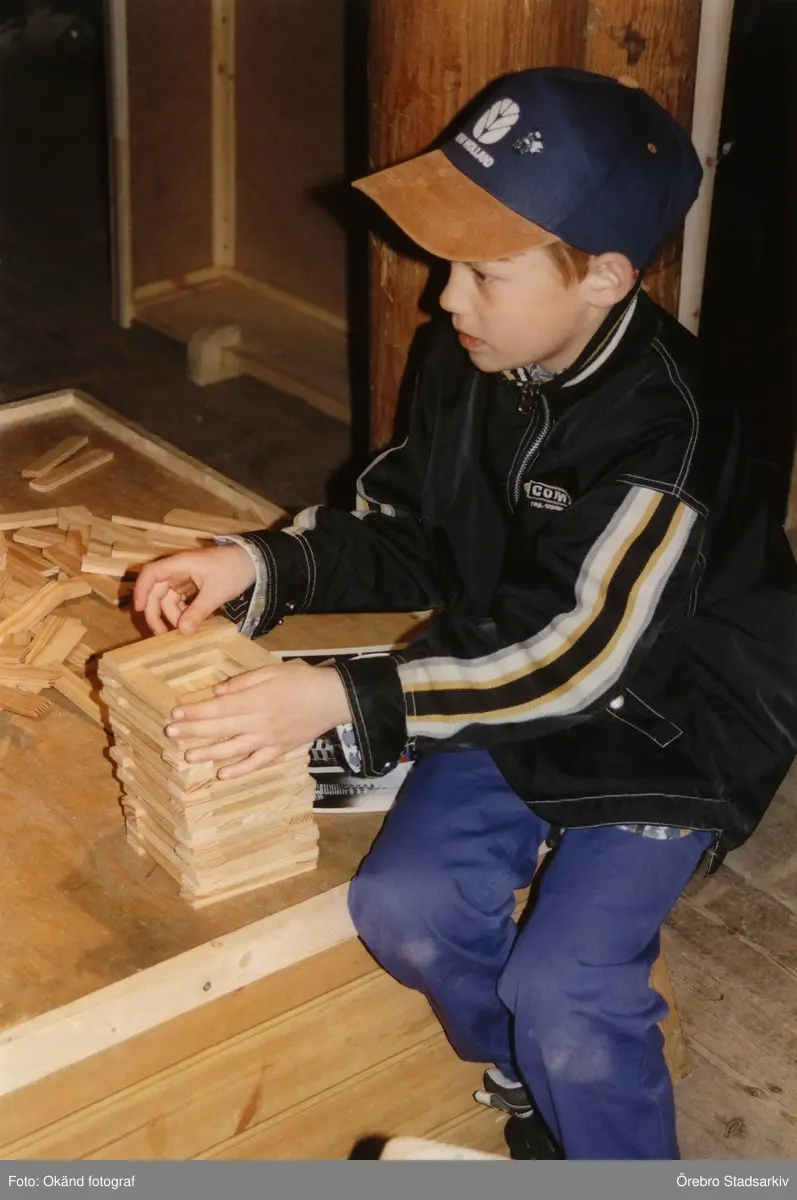 Pokje bygger med jenga i Tom Tits i Tekniska kvarnen, 1997