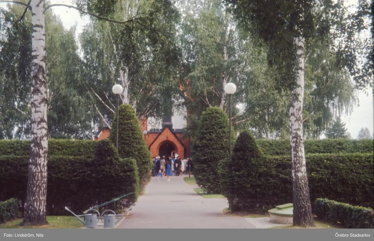 Besökare utanför Längbro kyrka, 1960-tal