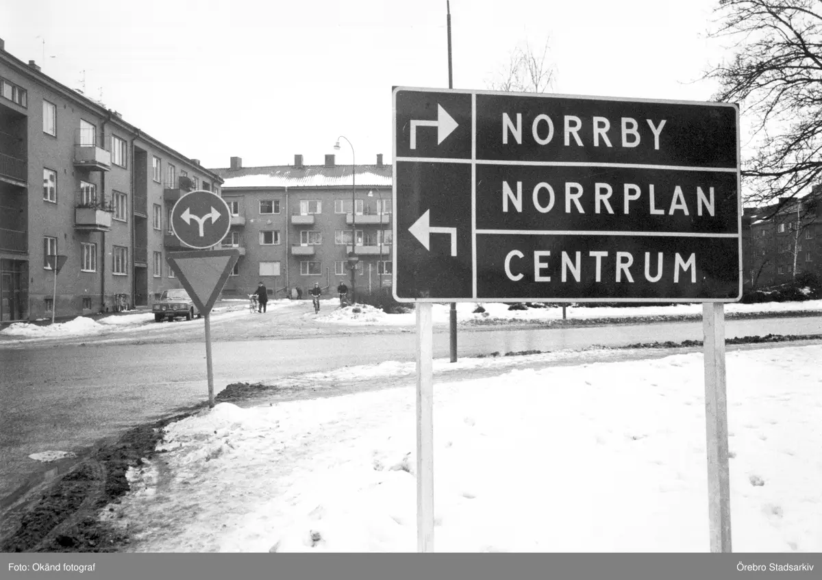Vägskylt visar vägen Norr eller centrum, 1960-tal