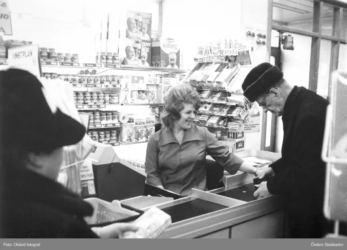 Kunder i kassan på Stjärnlivs på Hjorttorpsvägen, 1960-tal