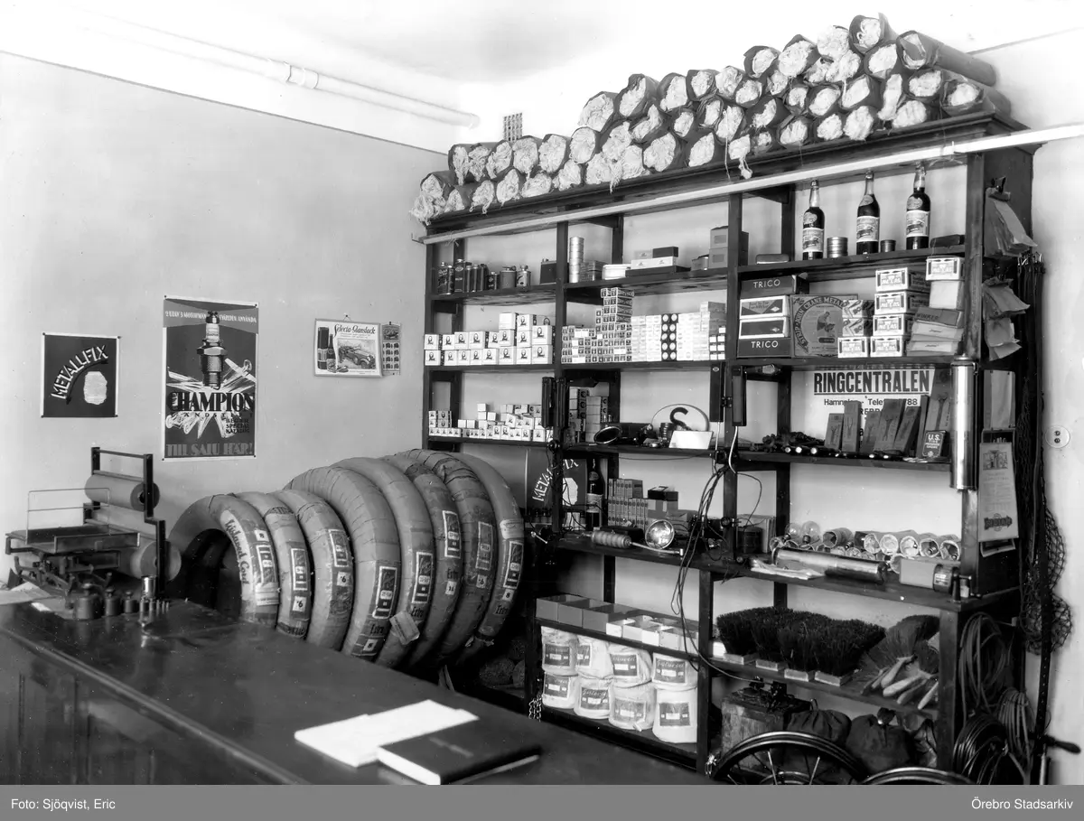 Interiör från motoraffär på Hamnplan, 1930-tal