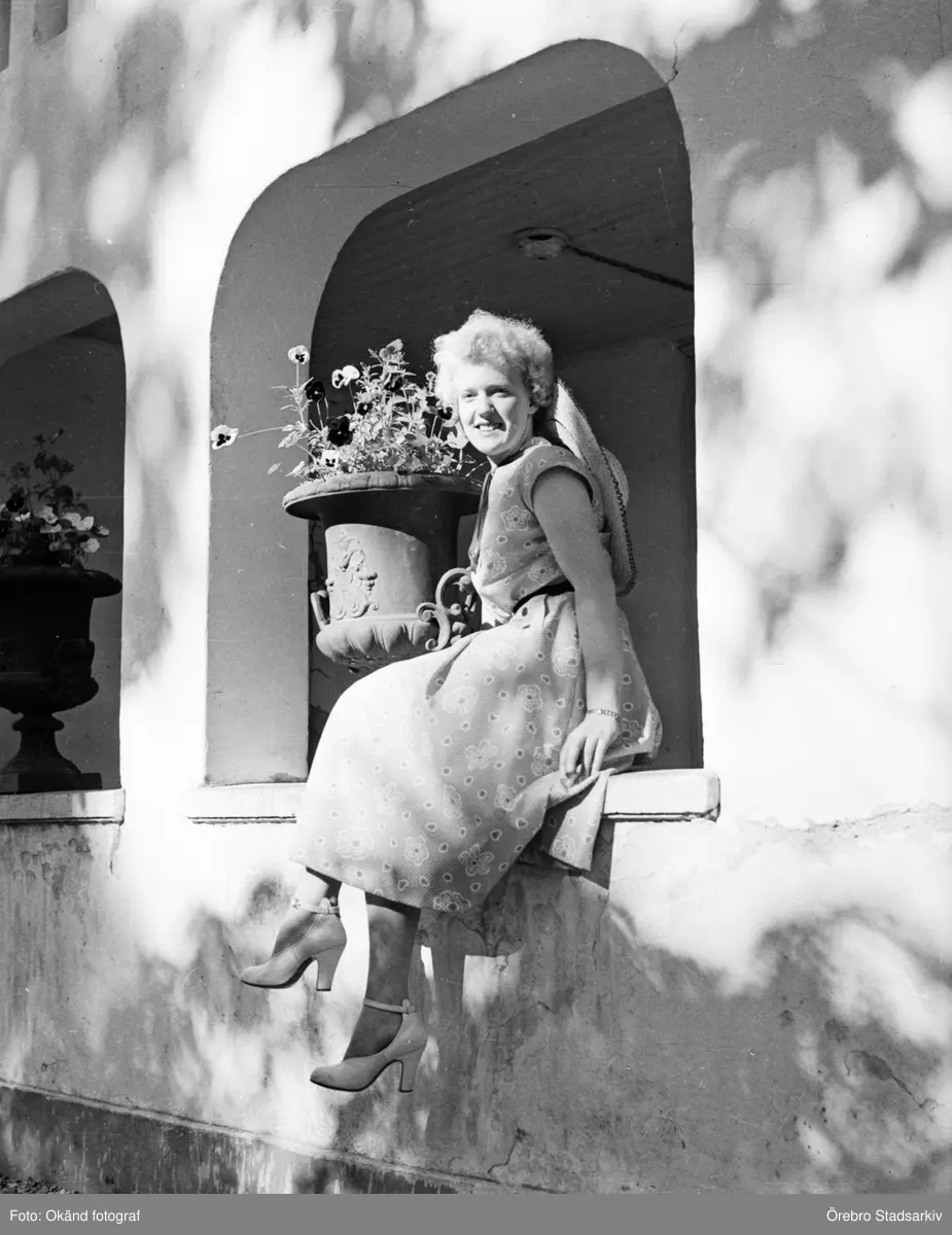 Kvinna vid disponentvillan vid Örebro Murbruksfabrik, juni1952