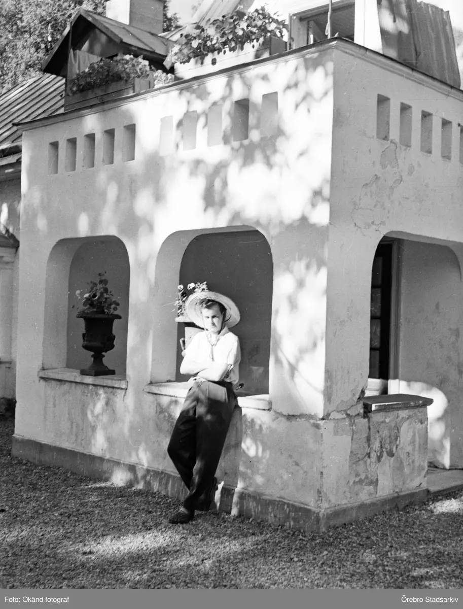 Man vid disponentvilla vid Örebro Murbruksfabrik, juni1952