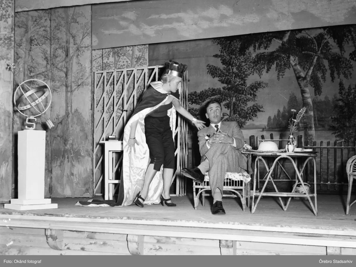 Skådespelare i Thespis på scen i Hennes lilla Majestät, juni 1954