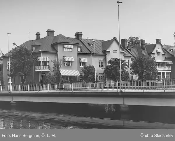 Hamnbron framför hus längst Alnängsgatan, 1989