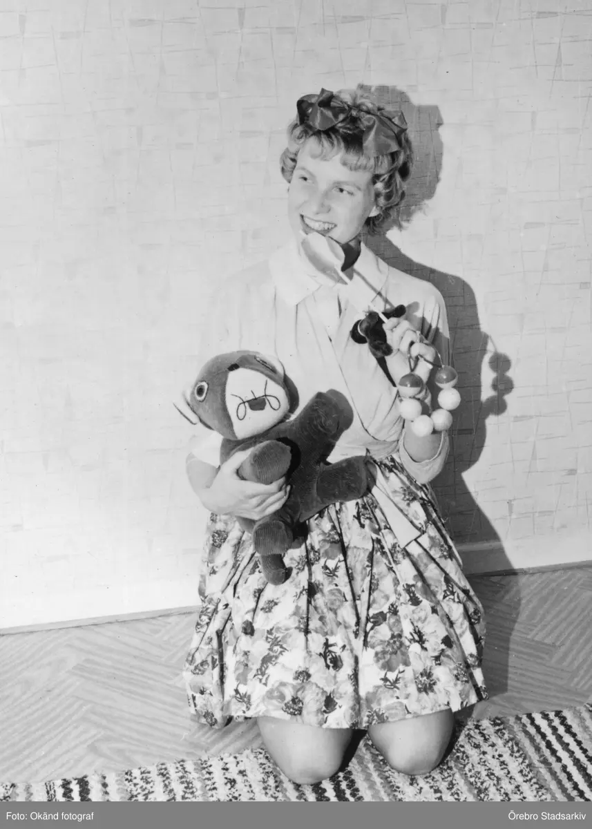 Kvinna utklädd på möhippa, 1950-tal
