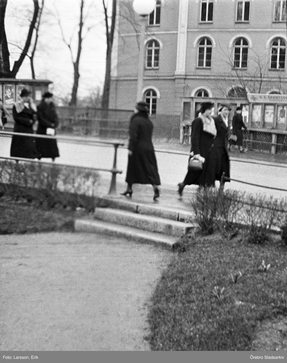 Flanerande damer framför Gamla Teatern, 1937