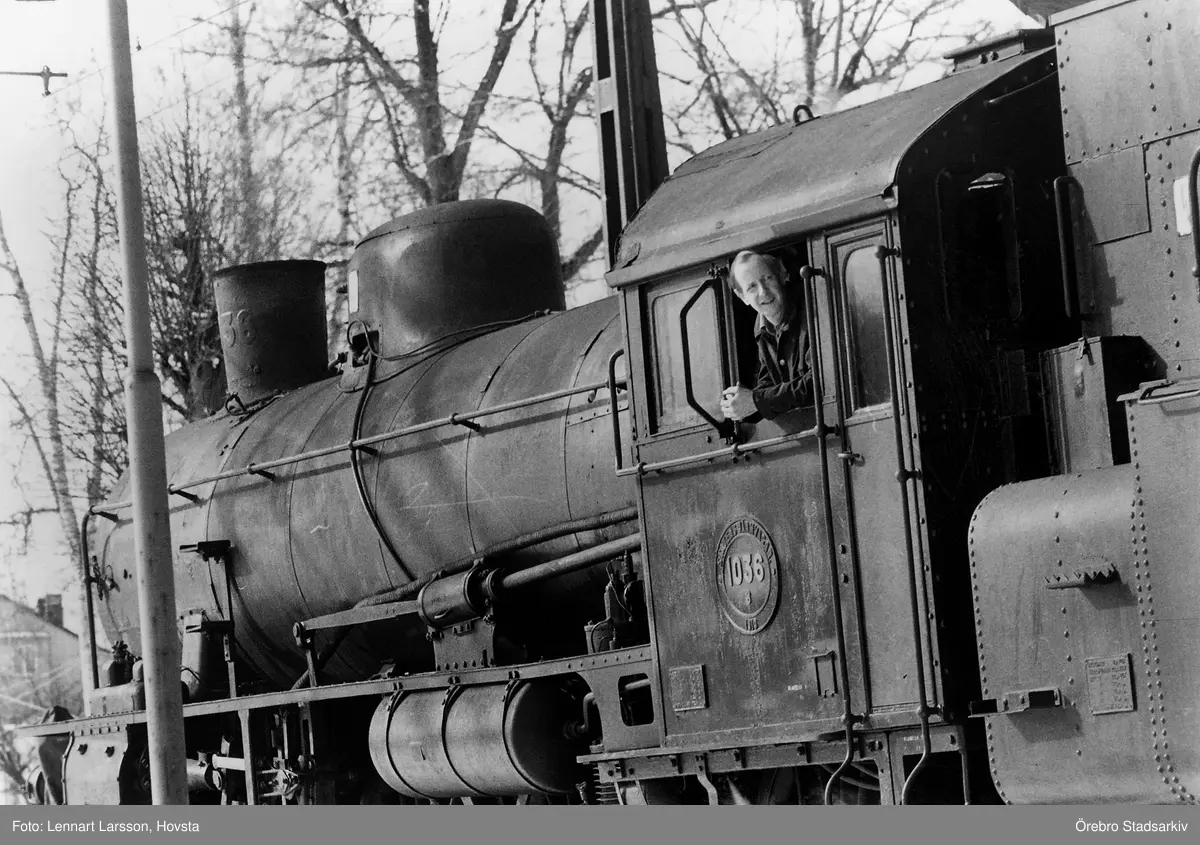 Lokförare i lok 1036 på väg till stallarna i Säbylund, 1972