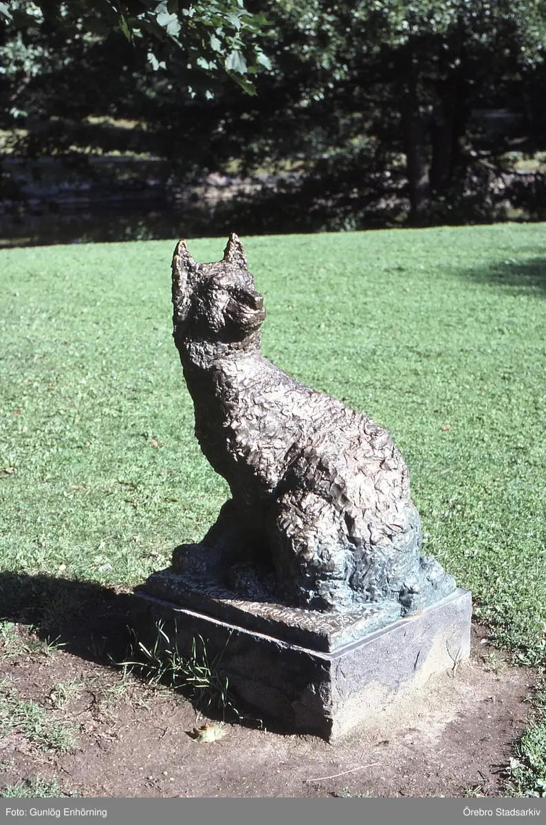 Skulpturen Lyssnande lodjur i Stadsparken, 1985