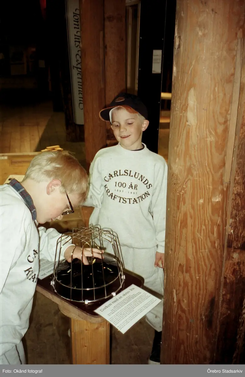 Experiment med burk med lös skruv på Tom Tits i Tekniska kvarnen, 1997