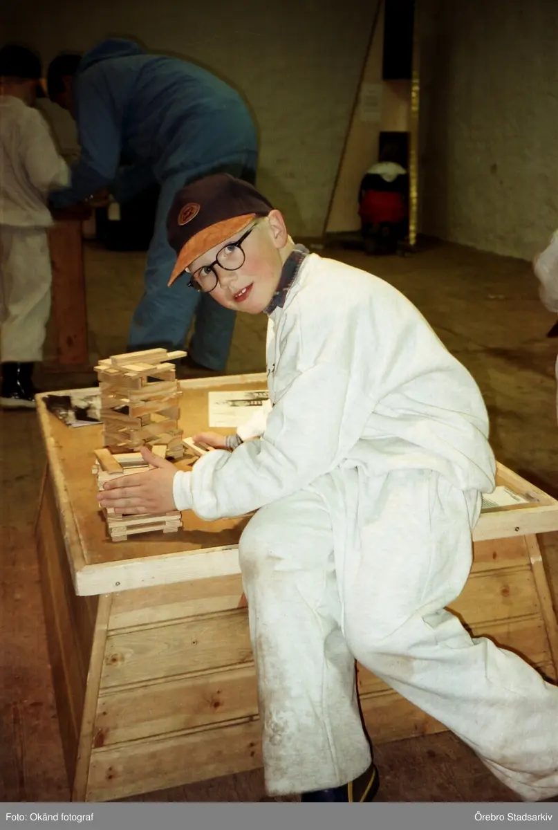 Pojke bygger torn på Tom Tits i Tekniska kvarnen, 1997