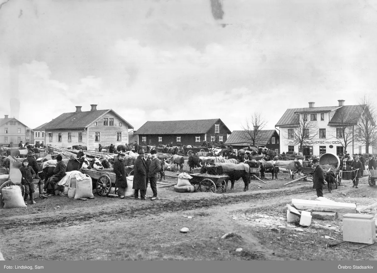 Kreatursmarknad i Odensbacken, 1908