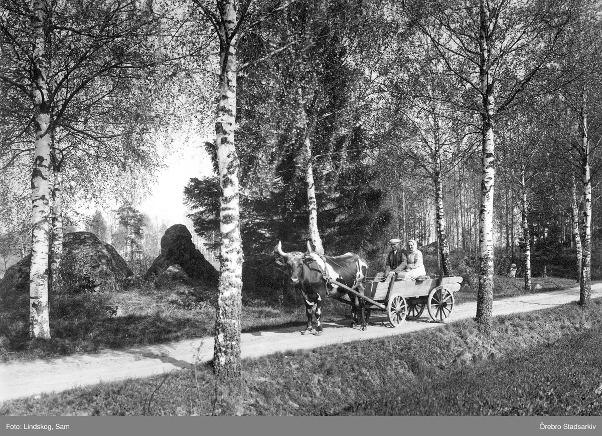 Par i oxdragen vagn i Täby, 1930-tal