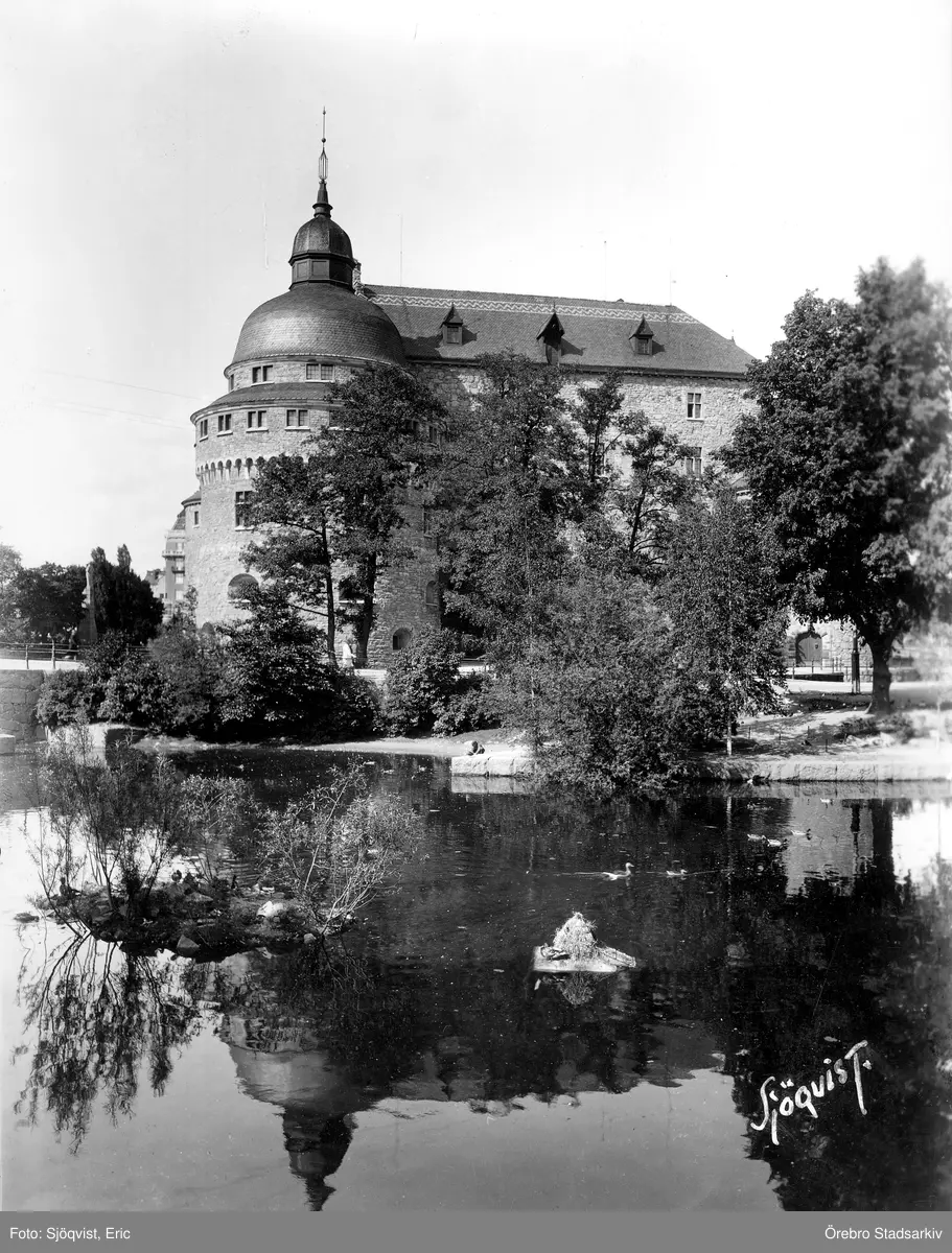 Örebro slott med spegelbild, 1920-tal