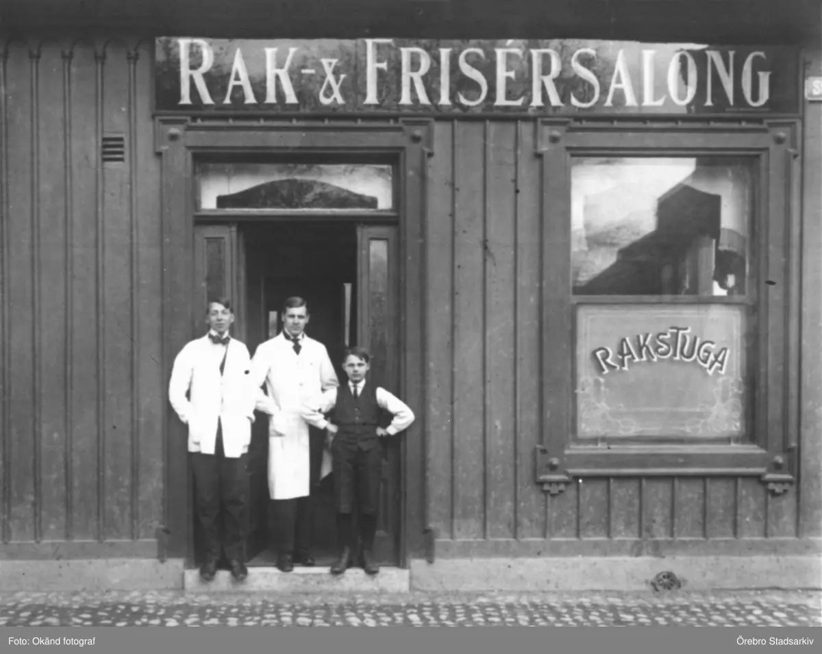 Rak- och frisersalong med personal, 1920-tal