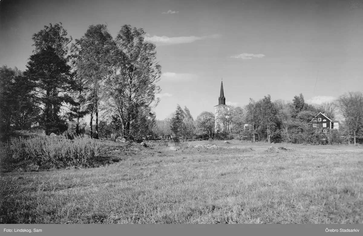Vy mot Näsby kyrka och prästgård, 1934