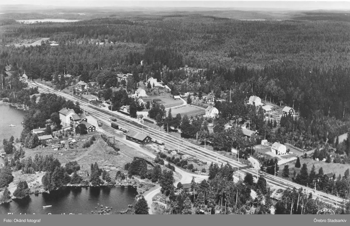 Flygfoto över Svartå stationssamhälle, 1940-tal