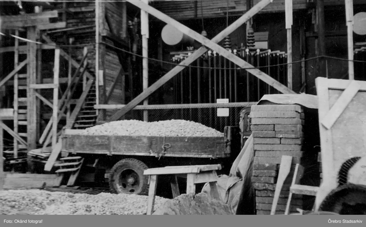 Vagn med grus till ombyggnation av elverket, 1950-tal