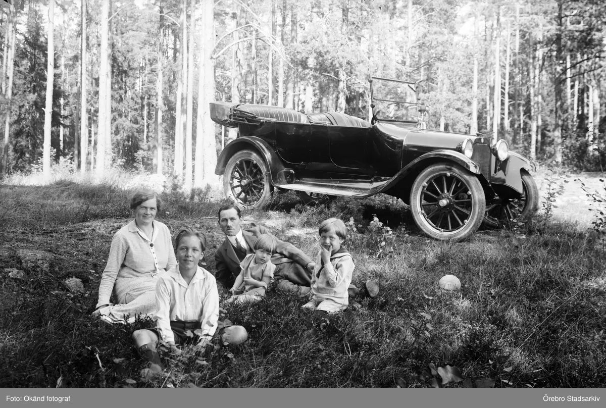Familj vid bil i skogen, 1926