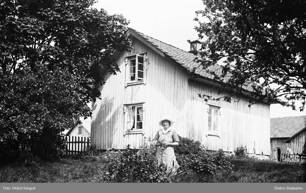 Kvinna framför hus, 1920-tal