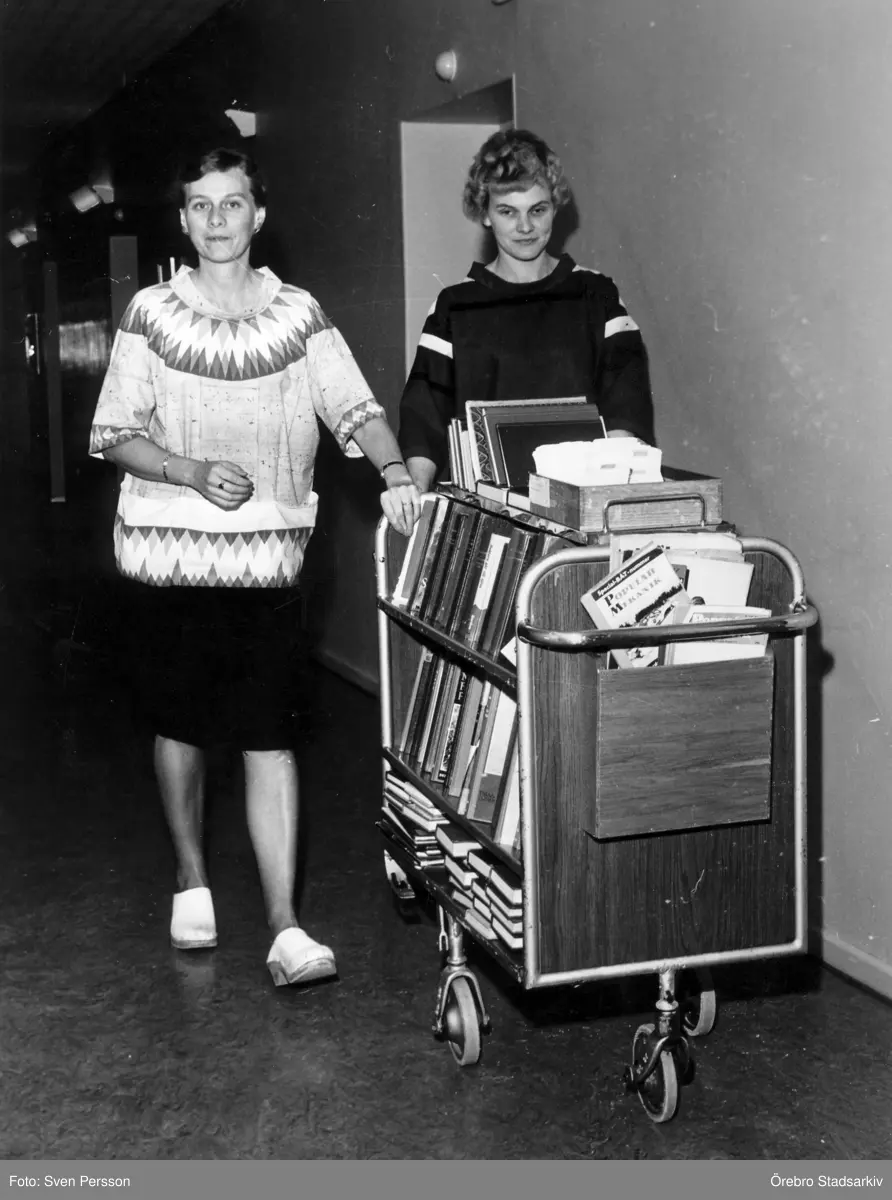 Personal kör bokvagn på Regionsjukhuset, 1970-tal