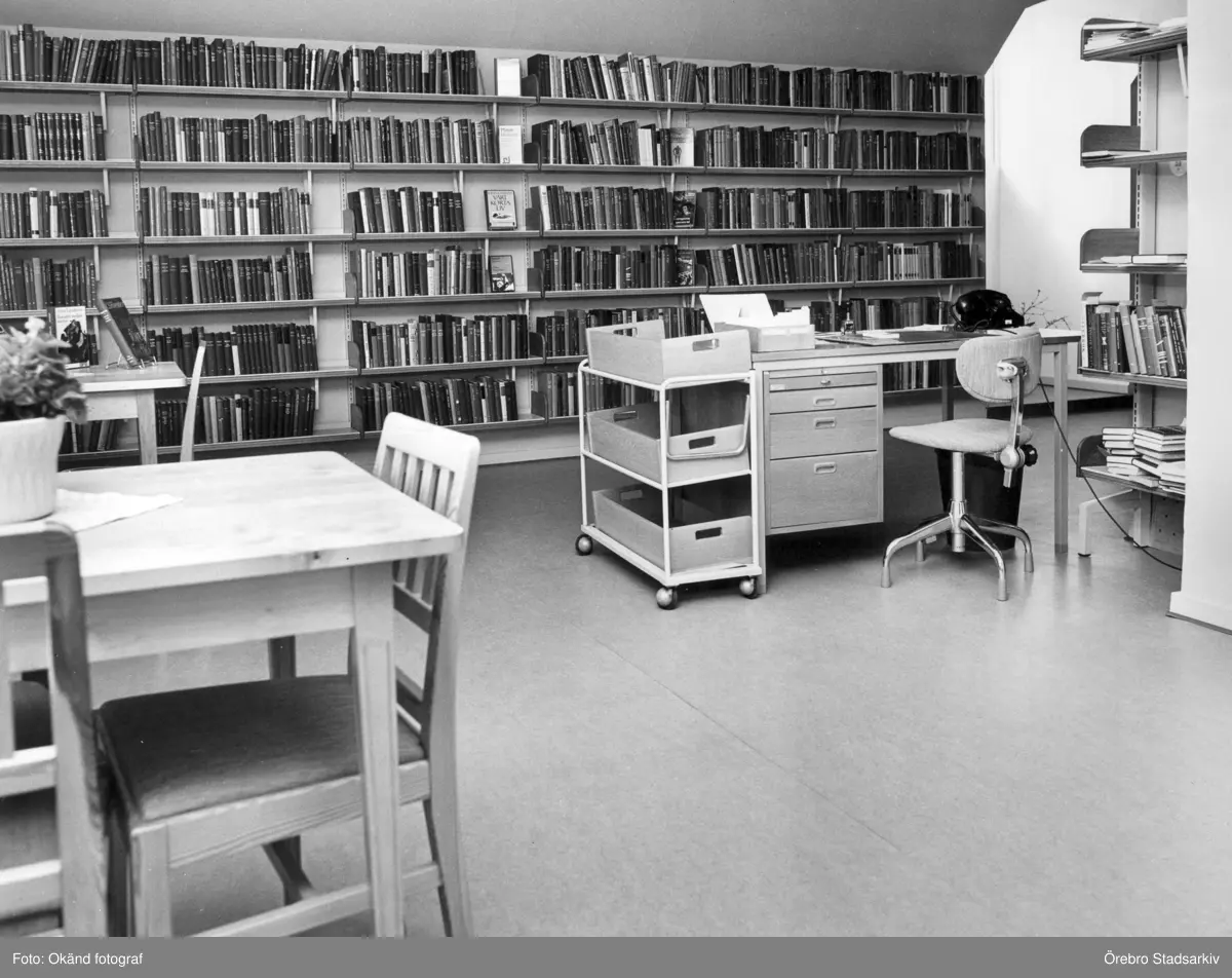 Utlåningsdisk på patientbiblioteket på Regionsjukhuset, 1970-tal