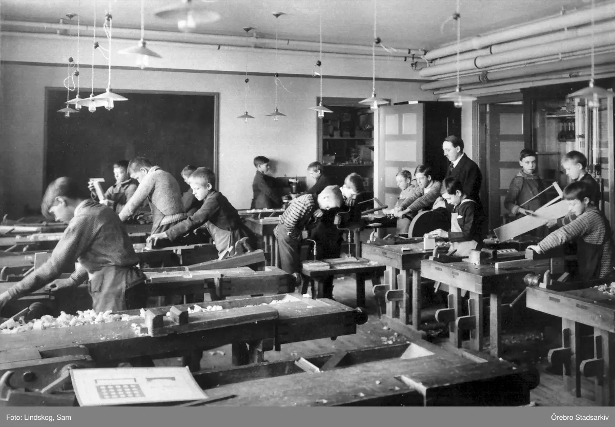 Lektion i träslöjd på Engelbrektsskolan, 1925-1930