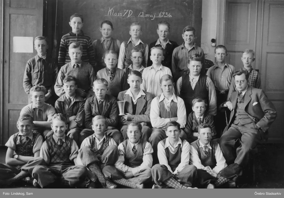 Klass 7D på Trädgårdsskolan, 1936-05-13