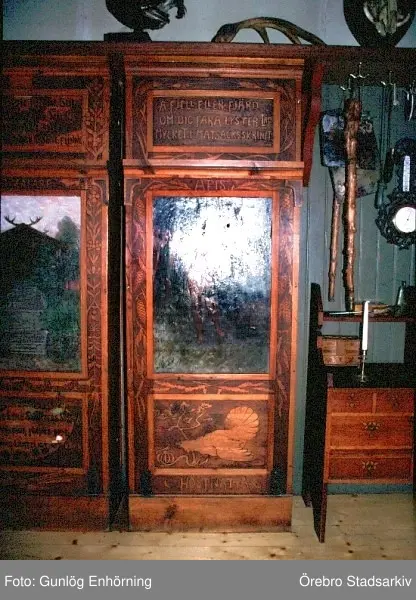 Målat skåp i Axel Borgs jaktstuga, 1988