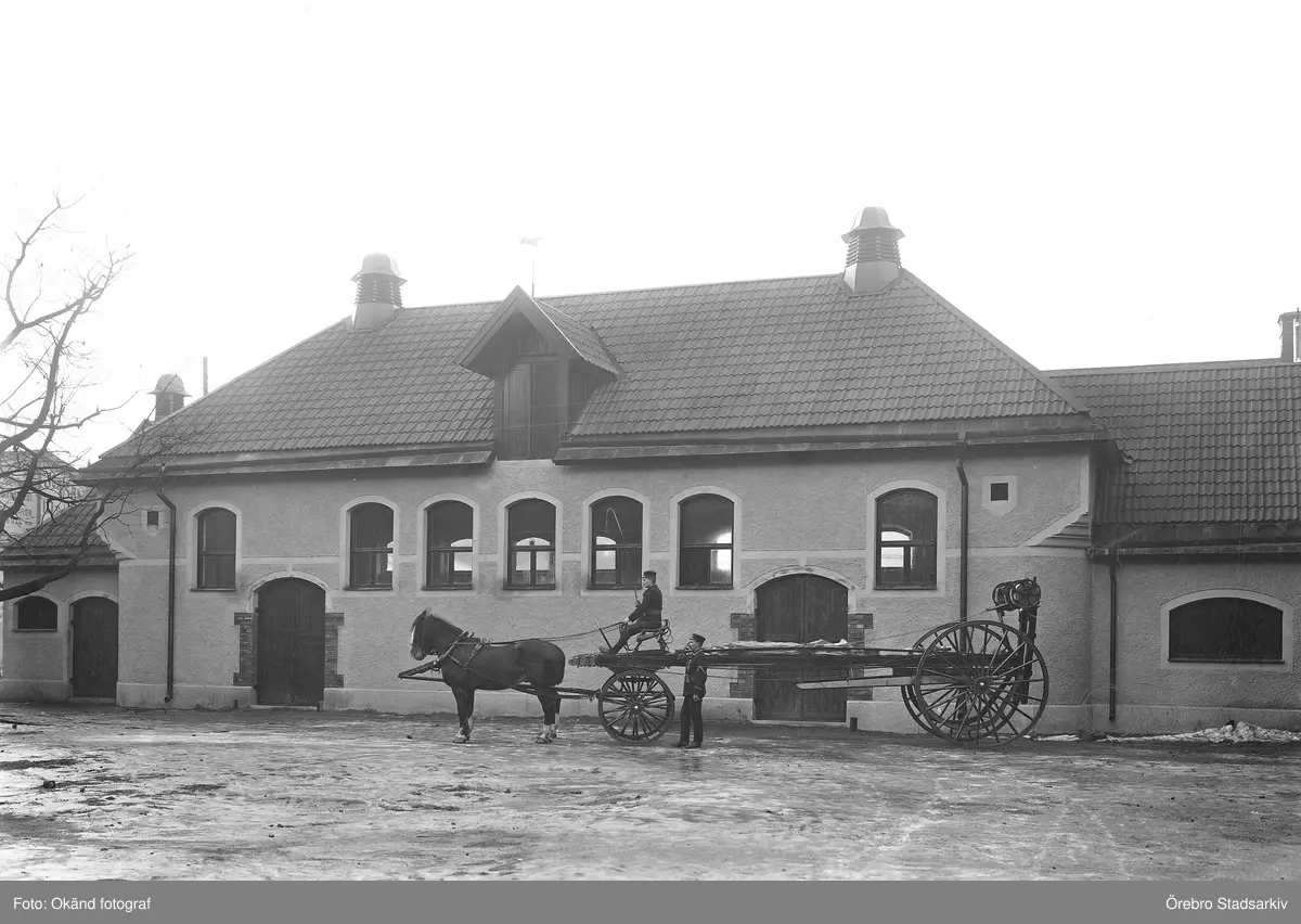 Hästdragen brandvagn på brandstationens gård, efter 1903