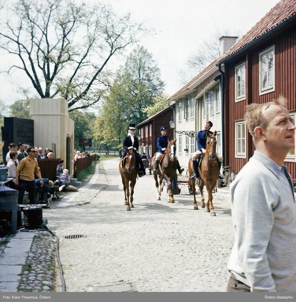 Ridande skådespelare vid Tv-inspelning av Markurells i Wadköping inför publik, 1968