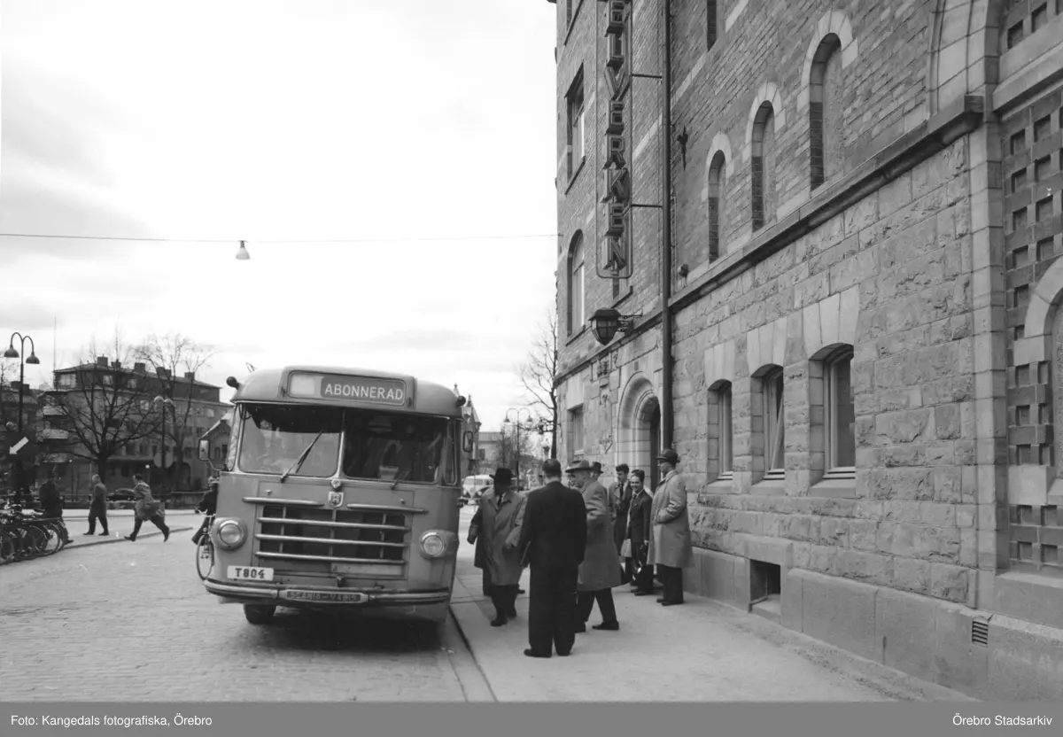 Abonnerad buss parkerad på Vasagatan 1955-05-24