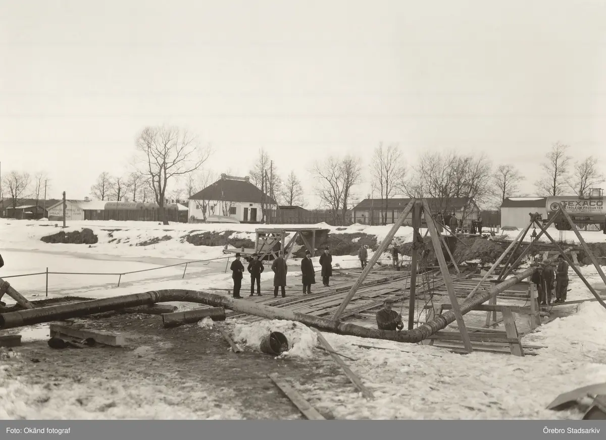Gasdykarledning vid Bygärdesbäcken byggs, mars 1929