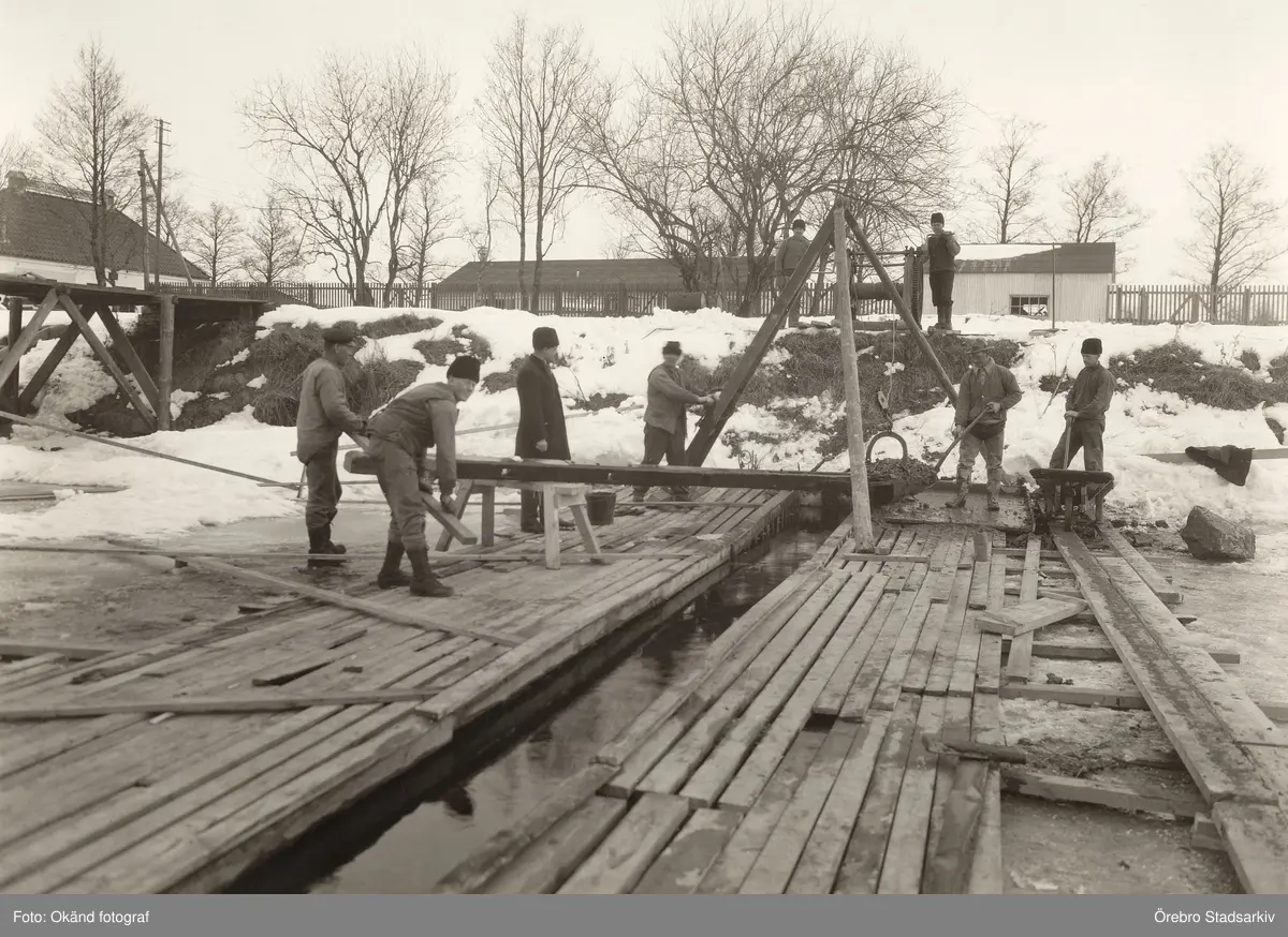 Gasdykarledning vid Bygärdesbäcken byggs, 1929-03-09