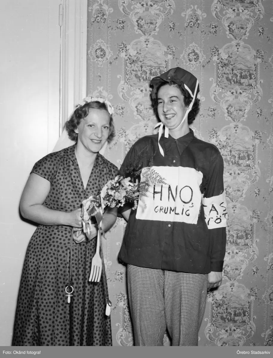 Brud med väninna på möhippa på Lilla Hotellet, 1954