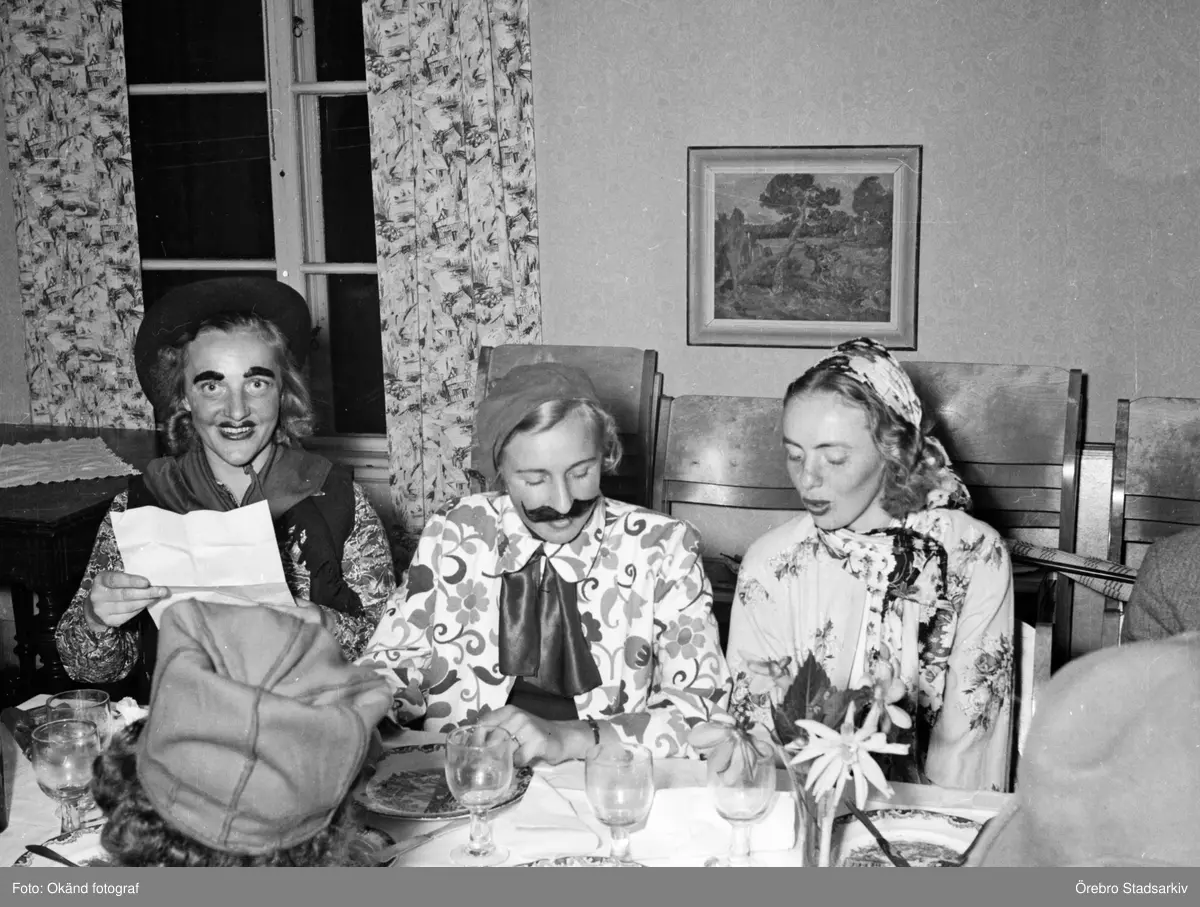 Tre deltagare på möhippa på Kanalträdgården, 1953-09-15