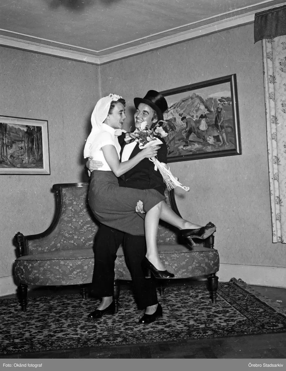 Brudpar på möhippa på Kanalträdgården, 1953-09-15