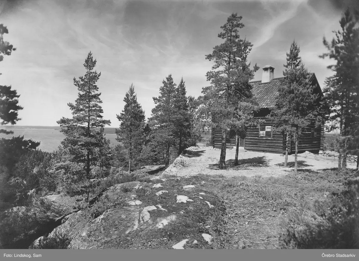 Jaktstuga på jätteberget och sjön Tisaren I Hallsberg, 1930-tal