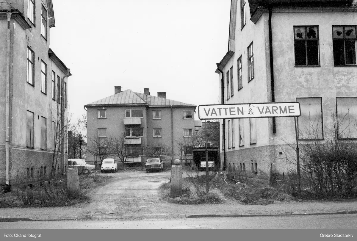 Skylt för firman Vatten och värme på Villagatan, 1971