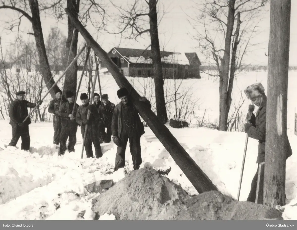 Stolpresning vid luftledning, 1930-tal