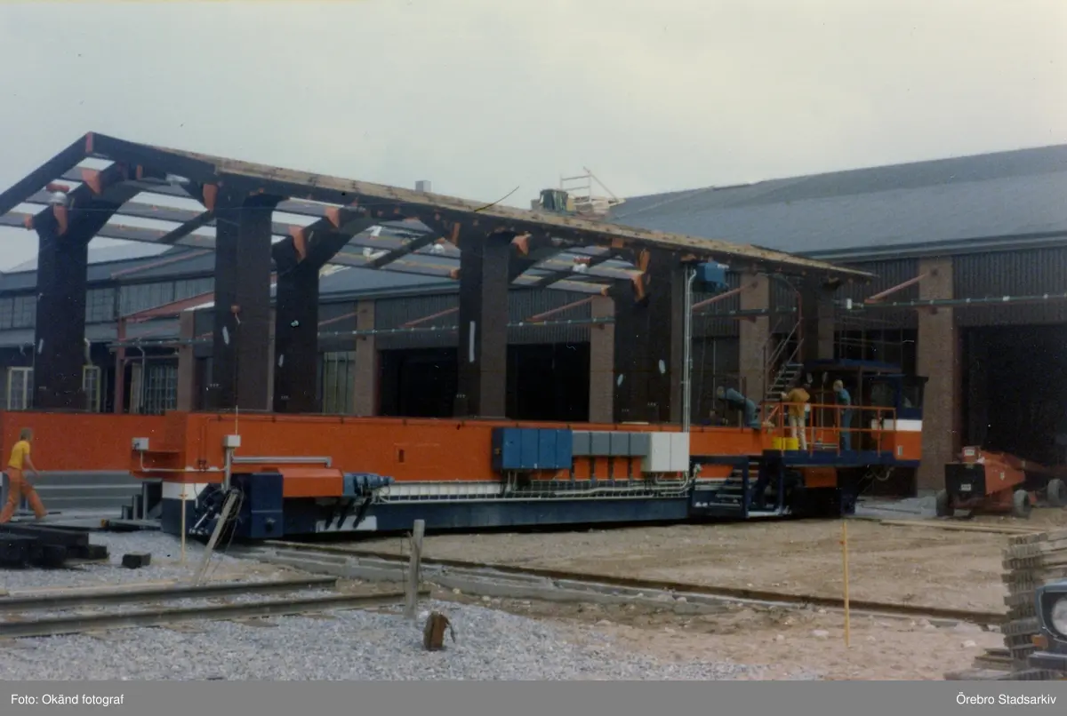 Loktraversen 'Färjan' installeras på Centralverkstäderna, Grev Rosengatan, 1980-1981