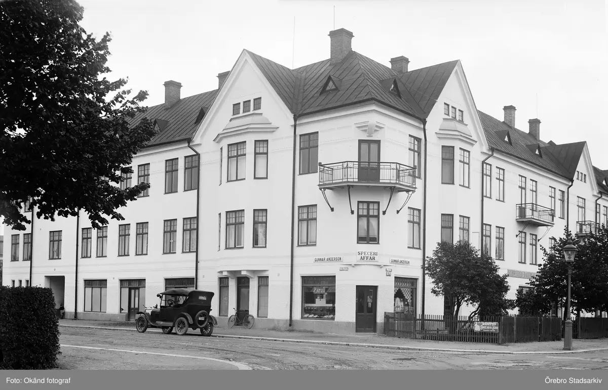 Gunnar Andersson speceriaffär i hörnhuset Nygatan och Kasten Ottergatan, 1926