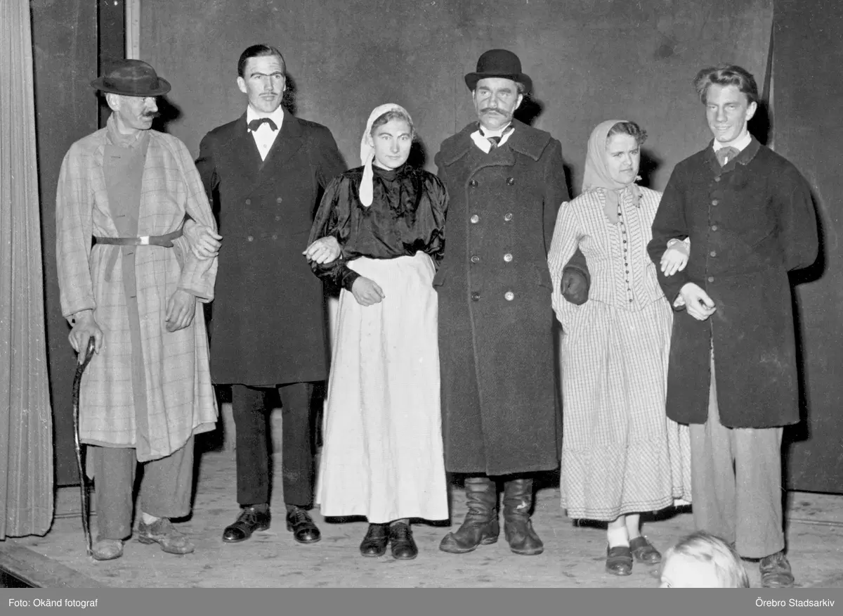 Skådespelare i pjäsen Stor-Klas och Lill-Klas.på scen i Vintrosa, 1950-tal