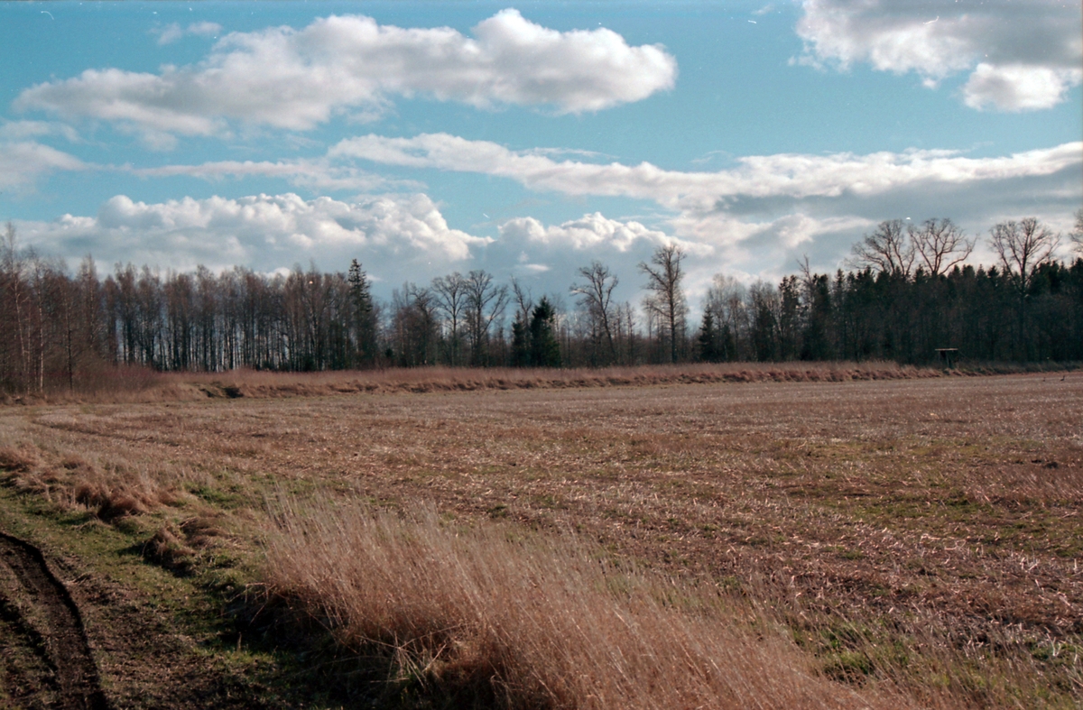 Anlagd våtmark bakom vall mot åker, Frugården Vänersnäs