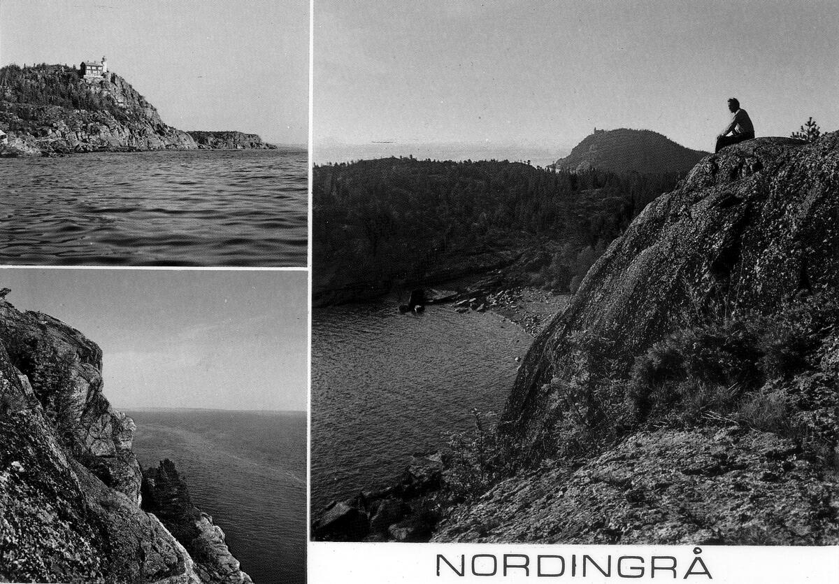 Vykort. Högbondens fyr och Fågelberget Höglossmen.