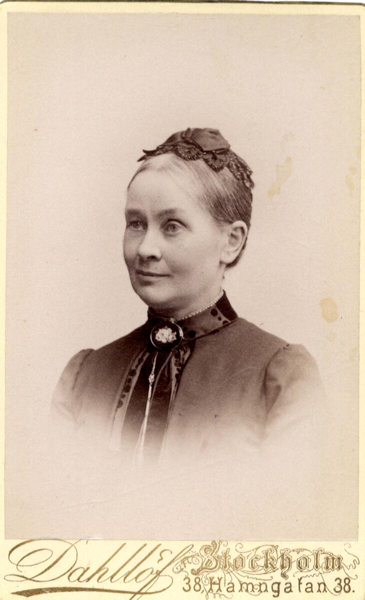 Fru Ebba Dellwik född Collander. Alfred Dahllöf Hamngatan 38 Stockholm.