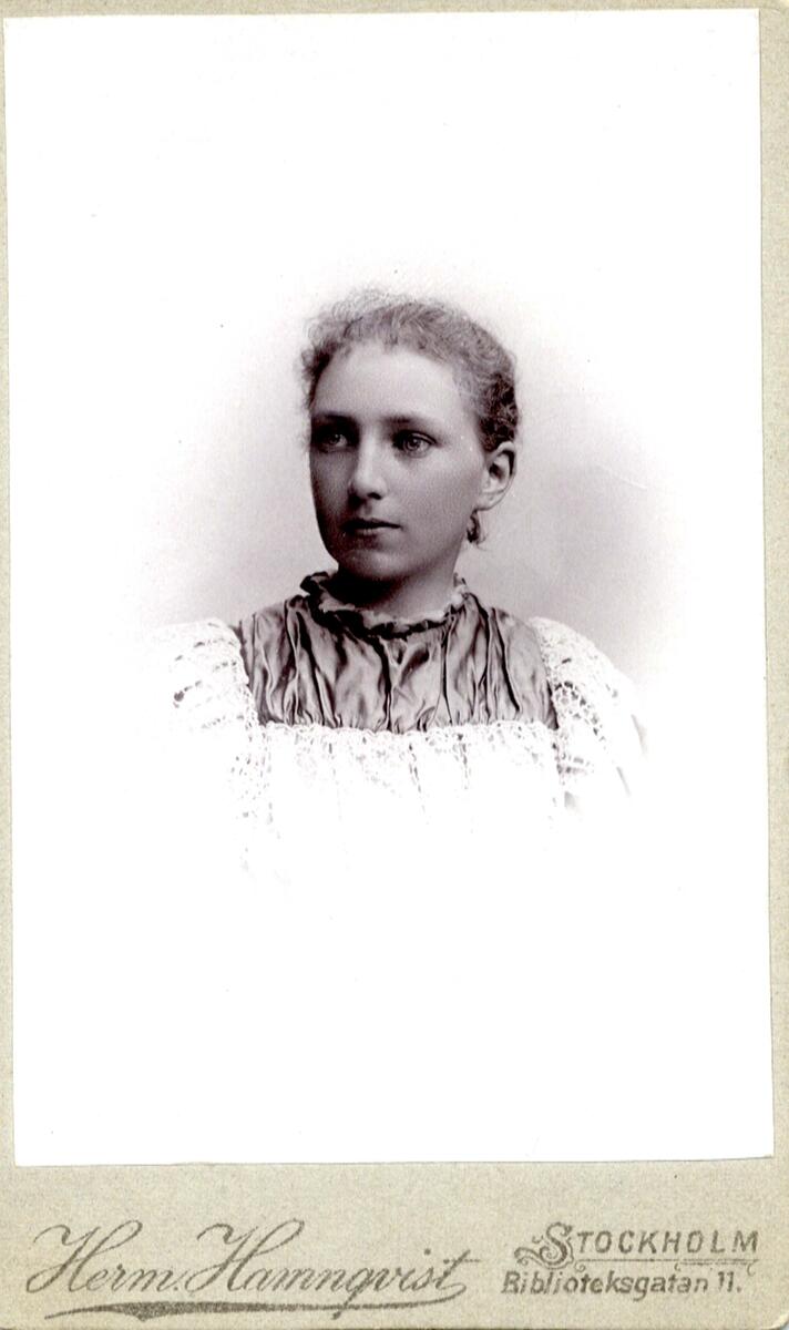 Selma Tjerneld. Herm. Hamnqvists Fotografi-Atelier Stockholm Biblioteksgatan 11, 2 tr.