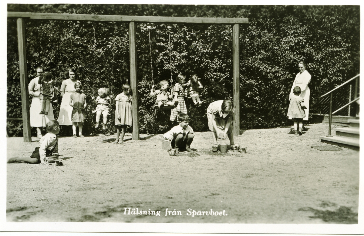 Vita Bandet. Barn och kvinnor utanför barnhemmet Sparvboet.