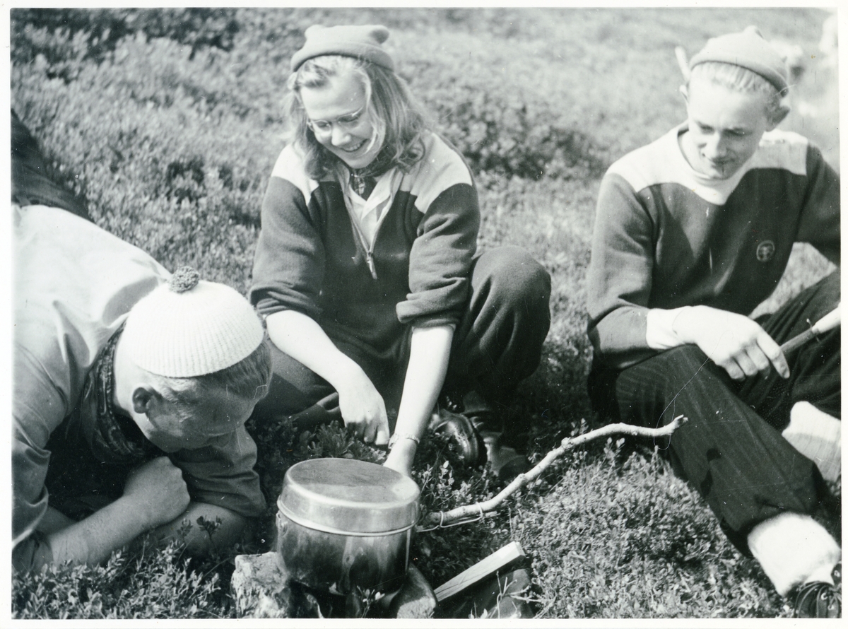 Tre IOGT-ungdomar på läger lagar mat i det fria.