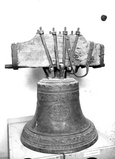 Klocka av malm, daterad 1701, på Västerås läroverk i Västerås.